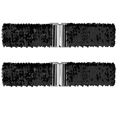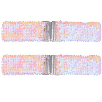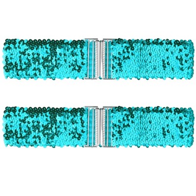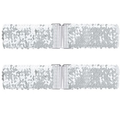 Allegra K Women's Stretchy Wide Waist Belts Interlock Buckles Shinny Sequins Decor Belts for Dresses 2 Pcs 60cm/23.62" Gold