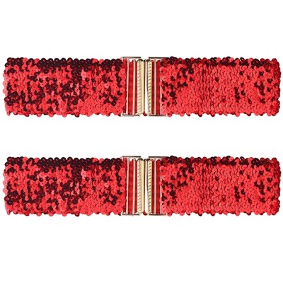 INSPIRE CHIC Women's Shinny Wide Waist Belts Interlock Buckles Sequins Decor Stretchy Belts 2 Pcs 23.62" Light Purple