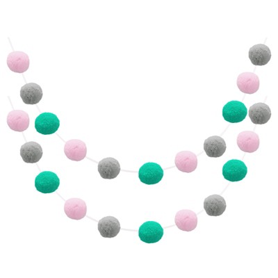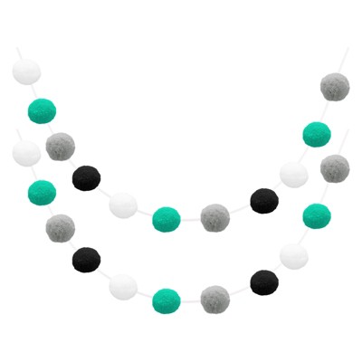 Unique Bargains Colorful Felt Ball Flexible Wear-resistant Pom Pom Garland 2 Pcs Black/White