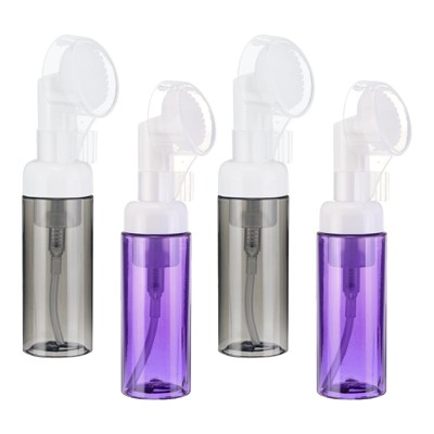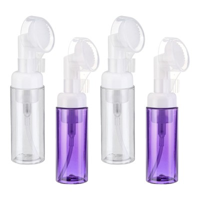 The set includes 4 empty foaming soap dispensers with brush heads. These soap pump containers have a 2oz capacity, making them suitable for travel or outings. Made of PET and silicone, the face foam bottle is durable, refillable, and reusable. Simply fill the bottle with your favorite facial cleanser or foaming soap, add water if necessary, and attach the brush head. Gently massage the foaming cleanser onto damp skin in circular motions for a thorough cleanse. The empty foam face wash bottle can be used at home, in the kitchen, bathroom, office, or on trips. Suitable for cleaning supplies and facial cleansers. When using the brush head attachment, be gentle to avoid scrubbing too vigorously to prevent irritation or damage to the skin. Keep the foaming bottles clean and dry.
