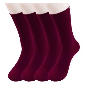INSPIRE CHIC Women's Elastic Selvedge Sheer Nylon Crew Socks 2 Pairs fit women shoe size 4-12 Burgundy