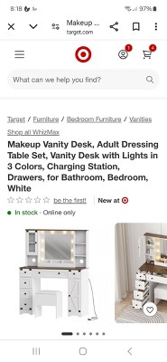 Makeup Vanity Desk, Adult Dressing Table Set, Vanity Desk with Lights Charging Station, Drawers, for Bathroom, Bedroom, White