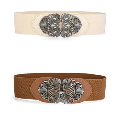 INSPIRE CHIC Womens Elastic Wide Waist Belts Floral Metal Buckle Stretchy Belts for Dresses Brown & Red