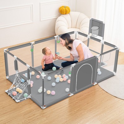 GOTGELIF 71"x48" 4-Panel Baby Playpen Portable Playard with Basketball Hoop Blue