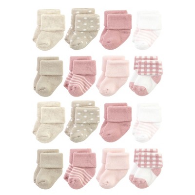 Hudson Baby Unisex Cotton Rich Newborn and Terry Socks, Mauve Neutral, 0-6 Months