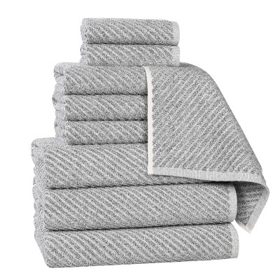 Viscose Cotton Blend Medium Weight Soft Textured Ribbed 9 Piece Towel Set, Charcoal - Blue Nile Mills