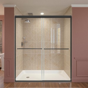 This bypass sliding shower door features a double slide rail design that optimizes space, making it an ideal choice for smaller bathrooms. The sliding door mechanism allows for convenient and safe entry and exit, minimizing the risk of accidents. Constructed with 6mm thick tempered glass, the door ensures safety, durability, and resistance to breakage. The frosted black finish contributes a stylish and modern aesthetic, enhancing the luxury feel of the bathroom. This versatile shower door is compatible with various bathroom styles and is designed for easy cleaning and maintenance.