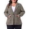 This women's plus-size blazer has a button on the front, long sleeves, and a plaid design, which adds a touch of simplicity and sophistication