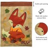 Harvest outdoor burlap garden flag features an adorable fox surrounded by colorful falling leaves and acorns