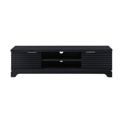 This sleek TV stand measures 58.66 inches in length, offering ample space for your entertainment setup. Featuring a modern design with clean lines, it includes open shelving in the center for media equipment and hidden storage on both sides to keep clutter out of sight. The sturdy construction ensures stability, making it a practical addition to any living room or media space. Its contemporary design fits seamlessly into modern interiors, offering both functionality and style.
