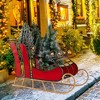 Costway 23" Christmas Santa Sleigh with 2-Tier Storage Shelf Christmas Sleigh Decoration