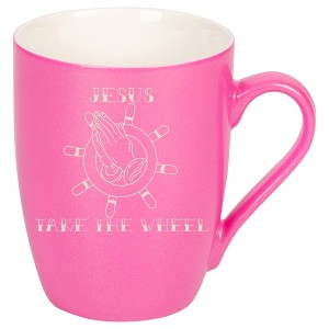 EYE-CATCHING DESIGN: With a vibrant design, this laser engraved mug features the sentiment "Jesus Take The Wheel" Created with a Pink metallic finish. Add a striking pattern to your drinkware collection with ease.