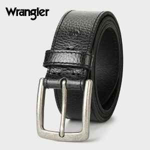 Wrangler durable belt features edge stitching, a matte finish harness buckle and a subtle embossed Wrangler(W) logo