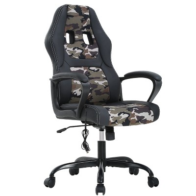BestMassage Gaming Chair Adjustable Office Chair with Lumbar Massage PU Leather and Headrest Armrests Computer Chair for Adults, White