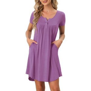 cheibear Women's Pajama Dress with Pockets 2026 Short Sleeve Button Up Sleepwear Lounge Nightgowns Large Gray Purple