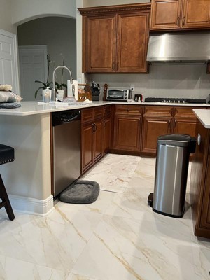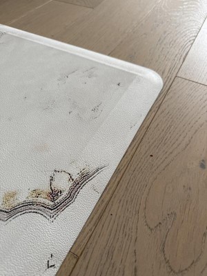 [This review was collected as part of a promotion.] The product itself is 5 stars. It is comfortable, it is thick, it is easy to clean, exactly what I needed. I did not appreciate how it looks. I was expecting something nice for my kitchen and the images on the mat look pixelated. Like if they zoomed in way to close on the image. It works as needed but the look, is not nice at all. I will be using it in my kitchen until I find a new one.