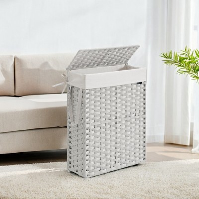 14.5 Gallon Slim Laundry Hamper with Lid Rattan Foldable Clothes Laundry Basket with Lid and Handles Removable Liner, Dove Gray