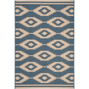Beach House BHS171 Power Loomed Indoor/Outdoor Accent Rug - Cream/Blue - 4'x6' - Safavieh