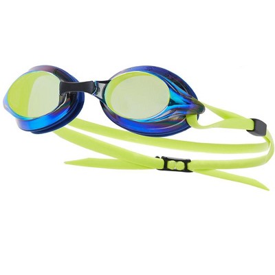 • The Sporti HydroZoom Vortex Mirrored Goggle features durable, shatter-resistant polycarbonate lenses, offering reliability for every swim