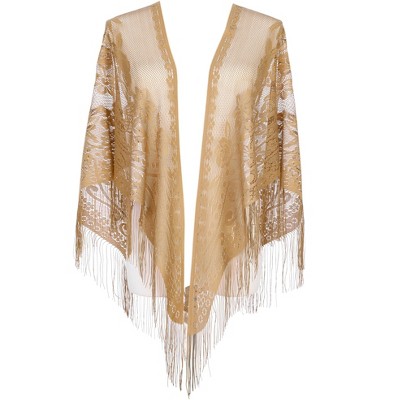 Anna-Kaci Women's Winter Cashmere Feel Scarf Solid Color Classic Fringe Shawls Wrap Scarves for Evening Dresses - Tan