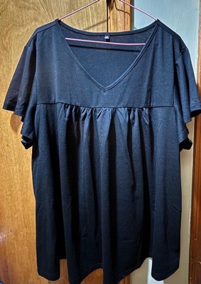 [This review was collected as part of a promotion.] This babydoll style shirt is well-constructed and fits true to size. The flutter sleeves are comfortable, but can easily expose the armpits. The babydoll hem hits a bit awkwardly on the chest, but that’s just how these types of shirts are. It’s a cute shirt that could be worn year-round!