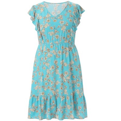 Elevate your casual wardrobe with this stunning Women's Plus Size Floral Print V-Neck A-Line Dress. Designed to flatter and fit curvy figures, this dress combines style and comfort effortlessly. The V-neckline and ruffle sleeves add a touch of elegance, while the elastic waistband ensures a loose fit for all-day wear. The ruffled hem and side pockets not only enhance the dress's aesthetic but also provide practicality for your daily needs. Crafted from soft and durable fabric, this knee-length dress is perfect for casual outings, brunches, or daytime events. The beautiful floral print adds a feminine charm, making it a versatile piece that can be dressed up or down. Available in a range of sizes, this dress is tailored to fit and flatter plus-size women, offering both style and confidence.