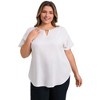 This plus-size top for women is made from comfortable woven fabric and features a notched neckline with metallic trim. Wear this short-sleeved blouse with a skirt, dress pants, heels, slacks, and sneakers for a formal or casual look. This versatile blouse will make a great addition to your casual collection!