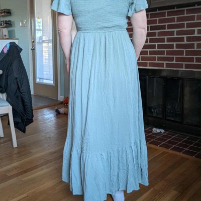Beautiful dress. Comfy and flowy. I’m normally an XL and the Large fits me very well. Only note I would make is that it’s more of a blue, not an olive color. Still a beautiful dress, just wish the color description was accurate.