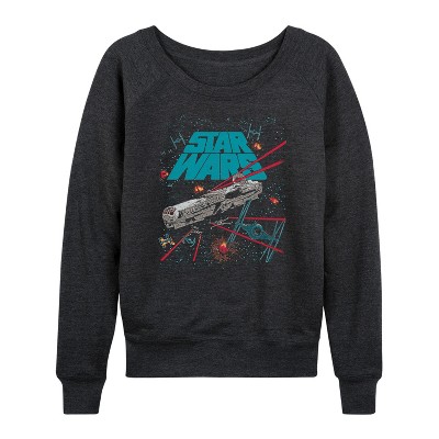 Women's Star Wars TIE Fighters Celestial Ships Lightweight French Terry Wide Neck Long Sleeve Graphic Shirt - Heather Charcoal - Small