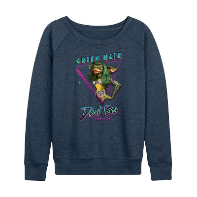 Women's Marvel Spider-man St. Patrick's Day Green Looks Good On Me Lightweight French Terry Wide Neck Long Sleeve Graphic Shirt - Heather Indigo -