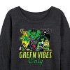 Women's - Marvel - St. Patrick's Day Green Vibes Only Lightweight French Terry Wide Neck Long Sleeve Graphic Shirt - 1 of 4