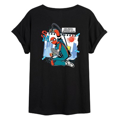 Women's Marvel Friendly Neighborhood Spider-Man Oversized Graphic T-Shirt - Black - Small