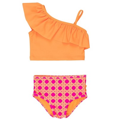Rufflebutts Girls One Shoulder Ruffle Tankini - Neon Island Time, 7