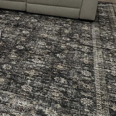I had high hopes for this rug, but am pretty disappointed. Firstly, being printed makes it feel like a blanket on the floor. It is very slick, especially if you are wearing socks. It is extremely hard to vacuum, since it’s so thin, which is very frustrating. The color in the photo is very misleading- it’s not that green or bright AT ALL. The color is nice, but not at all what I was expecting. I’m sad o spent so much money on this and will probably be getting a REAL RUG somewhere else very soon.