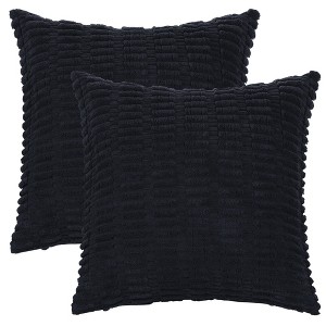 Unique Bargains Corduroy Decorative Modern Solid Throw Pillow Covers 2 Pcs Black 16" x 16"