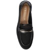 The Rainey dress loafer from Journee features a sleek 1-inch block heel, providing subtle height and stability. Its almond toe design and faux leather material offer a modern look suitable for various occasions and classy events. With a cushioned footbed and slip-on closure, this loafer ensures comfort and convenience for all-day wear.