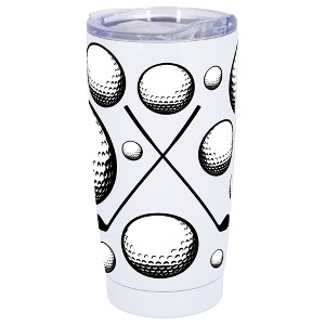 100 North 20 Ounce Stainless Steel On the Go Travel Tumbler With Push Top Lid, Golf Ball and Clubs White