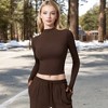Anna-Kaci Active Women's Long Sleeve Mock Neck Cropped Activewear Top - Small, Brown