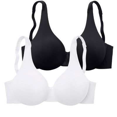 Get both comfort and style in this cute pack of 2 T-shirt bras. * Underwire * Unlined * Seamless preformed cups * Delicate embroidered detail at the center * Adjustable straps * Back fastening * 85% Polyamide, 15% Elastane. Imported. * Hand wash, no bleach, hang to dry * No dryer, iron, or dry clean