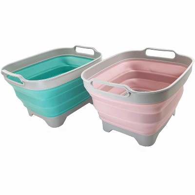 Details: **Collapsible Dishpan with Draining Plug **Brand: SAMMART **Material: TPE & PP **Expanded size: 13 x 10.7 x 7.8(h) inches **Collapsed size: 13 x 10.7 x 2.6(h) inches