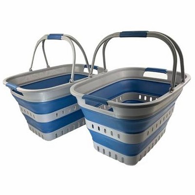 SAMMART 35L (9.25 Gallons) Set of 2 Collapsible Laundry Basket with Handles, Grey/Mist Blue