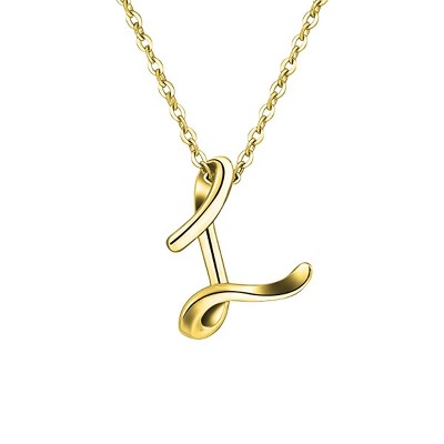 Stylish 14K Gold Plated "A" Initial Necklace. This Initial Necklace features 14K Gold Plated Twisted Letter. This is a must-have piece of jewelry with plenty of personality and lovely addition to your collection. It would make an ideal gift as well for someone you love as it is available in all letters of the alphabet. Chain length: 18 inches, Secures with a spring ring clasp.