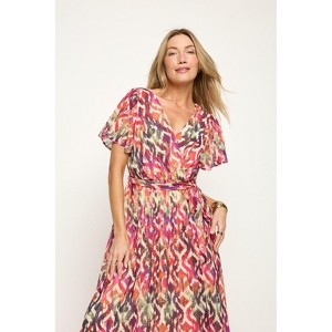 WEST K Women's Mira Flutter Sleeve Surplice Neck Georgette Midi Dress - Xlarge - Red Abstract