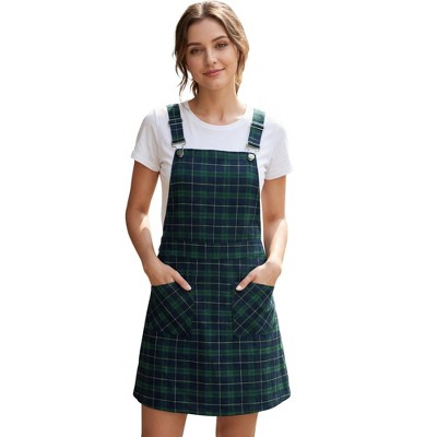 INSPIRE CHIC Women's Adjustable Straps Flared Mini Suspender Skirts Dark Green X-Small