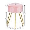 VECELO Vanity Stool with Storage, Strong Metal Legs Velvet Chair, Anti-Slip Feet Padded Seat for Make Up, Pink