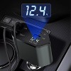 The 4-in-1 car charger is compact and convenient for my family. This device is flexible and bends at 90°. It has a fast charge feature and digital display. We can easily charge four devices with two retractable cords and two USB ports. It works great.