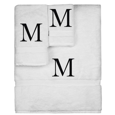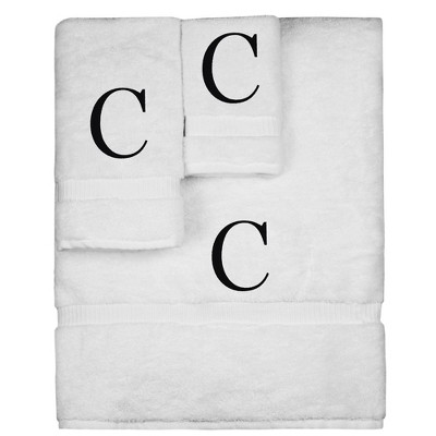 BC BARE COTTON Monogrammed Towel Set, Personalized Gift, Set of 3 - White - Black Block - A
