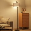 Boho Floor Lamp with Hand-Woven Rattan Linen Drum Shade Dimmable Remote Control 3 Color Temperatures Adjustable Height 61-69 Inch Farmhouse