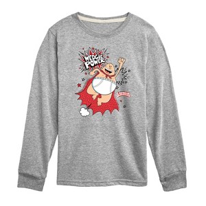 Captain Underpants - Wedgie Power - Toddler & Youth Long Sleeve Graphic T-Shirt - Celebrate the essence of Universal's Captain Underpants with officially licensed apparel featuring unique designs crafted exclusively by Hybrid Apparel. Each piece brings beloved characters, iconic imagery, and memorable moments to life, offering Captain Underpants fans a one-of-a-kind way to showcase their passion.