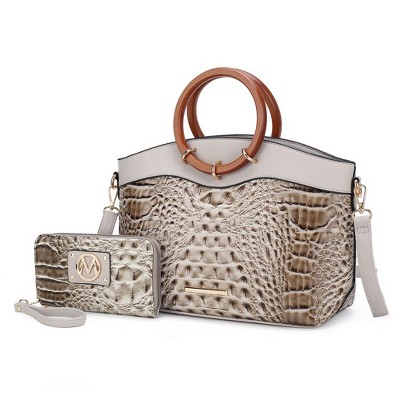 MKF Collection Phoebe Tote Women’s Faux Crocodile-Embossed Vegan Leather with Wristlet Wallet Bag by Mia K- Red